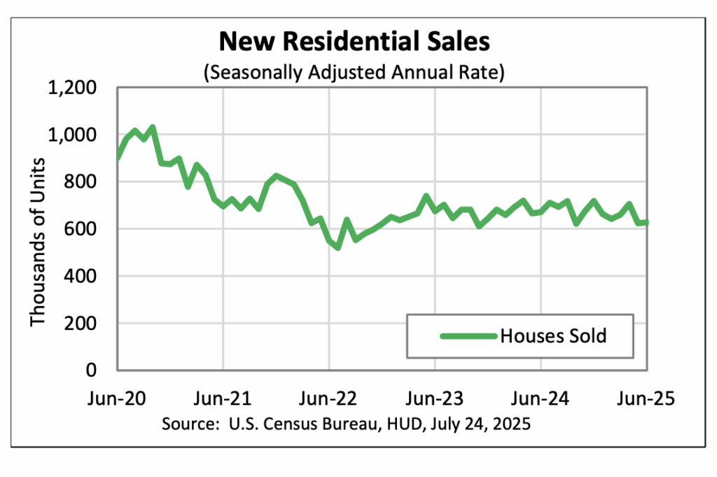 The average sales price of a new home sold in June was $501,000, down 2.0% compared with May but up 1.1% compared with June 2024.